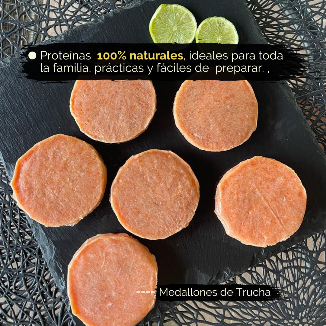 Hemos ampliado nuestro portafolio con la producción de proteínas derivadas de la trucha: los Medallones de Trucha y la Carne de Trucha, los cuales son 100% naturales, sin aditivos químicos y de fácil preparación, ideales para niños, mascotas o personas con planes de alimentación especiales.